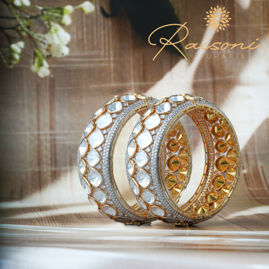 Floral Polki Lab Diamond Heritage Glowing Bangles