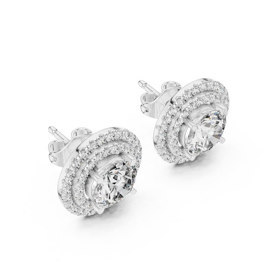 Glamorous Halo Round Lab Diamond Stud Earrings – Premium Double Halo Style for Women