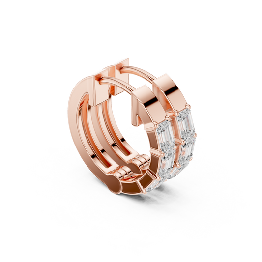 Gold Diamond Embellished Simple Hoop Lab Diamond Earrings