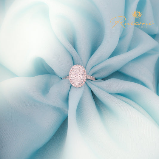 Halo Oval Shape 2 Carat Solitaire Lab Diamond Wedding Ring