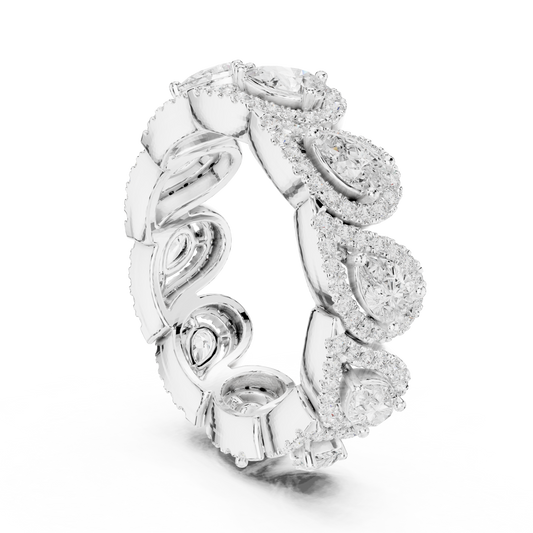 Iconic Pear Lab Diamond Halo Band Ring for Women & Girls