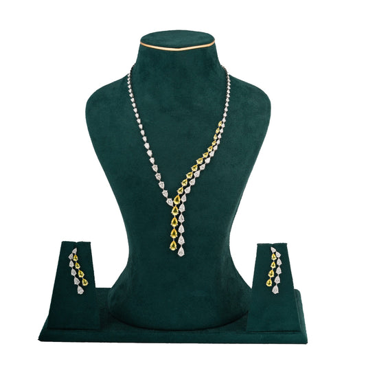 Two-Tone Lab Diamond & Yellow Sapphire Necklace Set for Women – With Earrings, 14K White Gold
