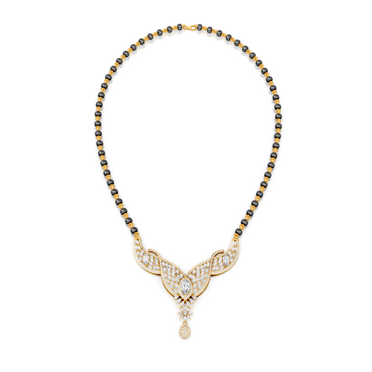 V-Wing Sparkling Lab Diamond Mangalsutra Pendant With Chain For Parties And Function