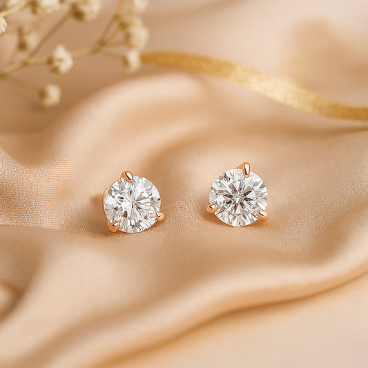 1.2 Carat Solitaire Studs For Women in 14Kt Rose Gold With Lab Diamond