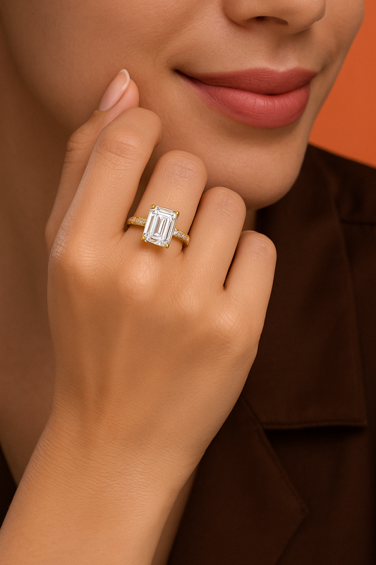 Celestial Emerald Spark Lab Diamond Ring – 2 Carat Solitaire with Pavé Side Band for Women