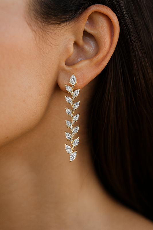 Leaf Design Long Drop Lab Diamond Earrings