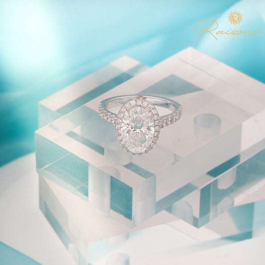 Halo Oval Shape 2 Carat Solitaire Lab Diamond Wedding Ring