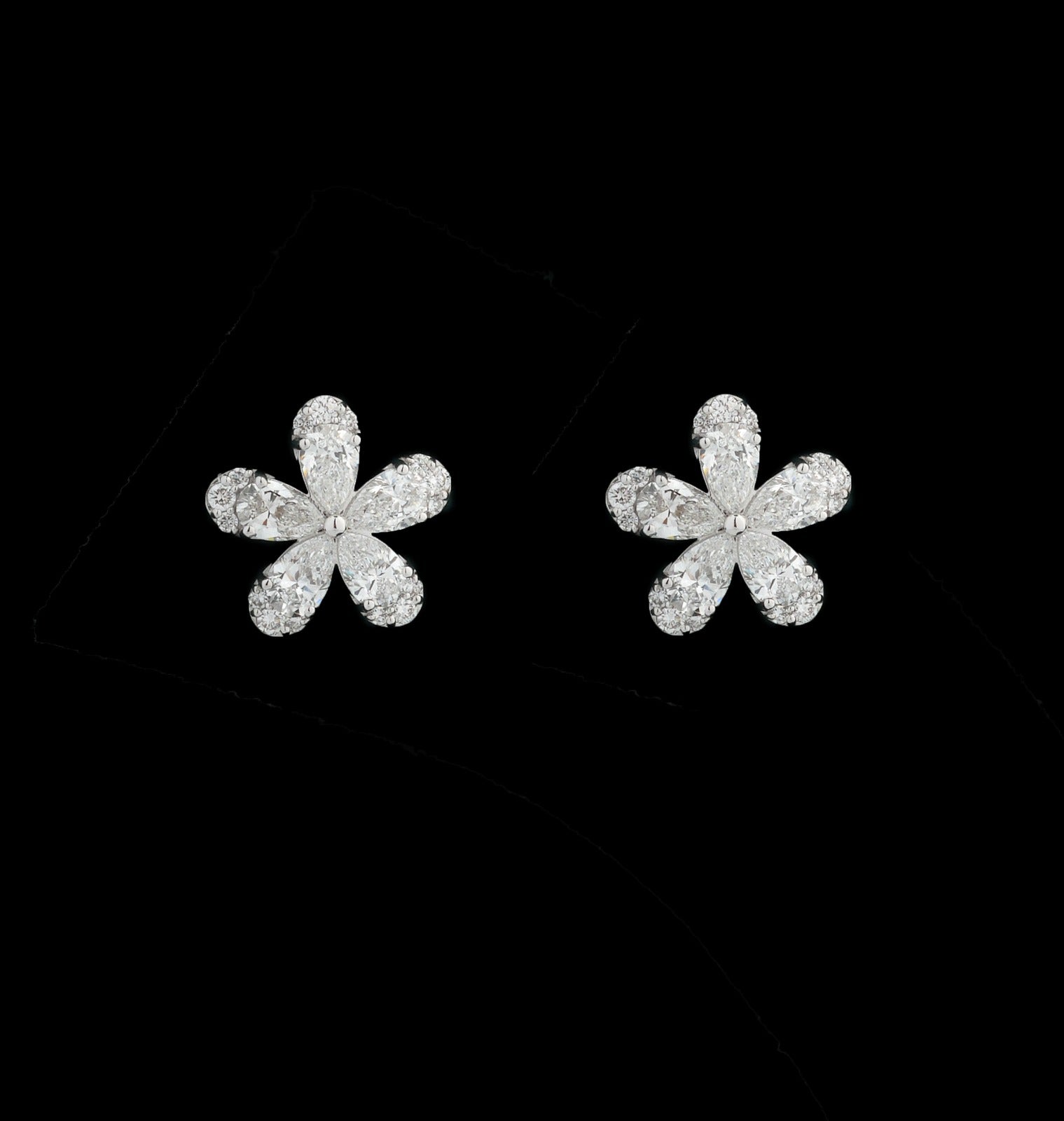 With 40 diamonds (2.61 ct total), including 10 pear-shaped diamonds forming elegant petals and round diamonds adding brilliance at the center and accents, these studs embody a perfect blend of nature-inspired charm and modern craftsmanship.