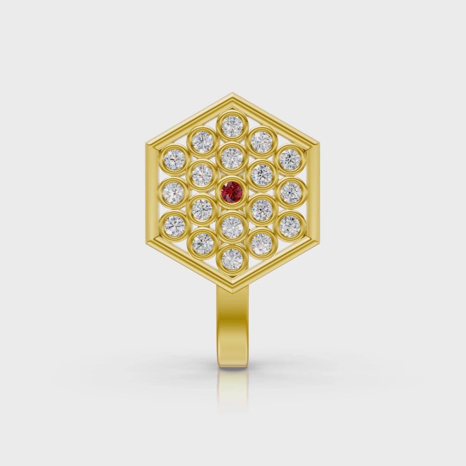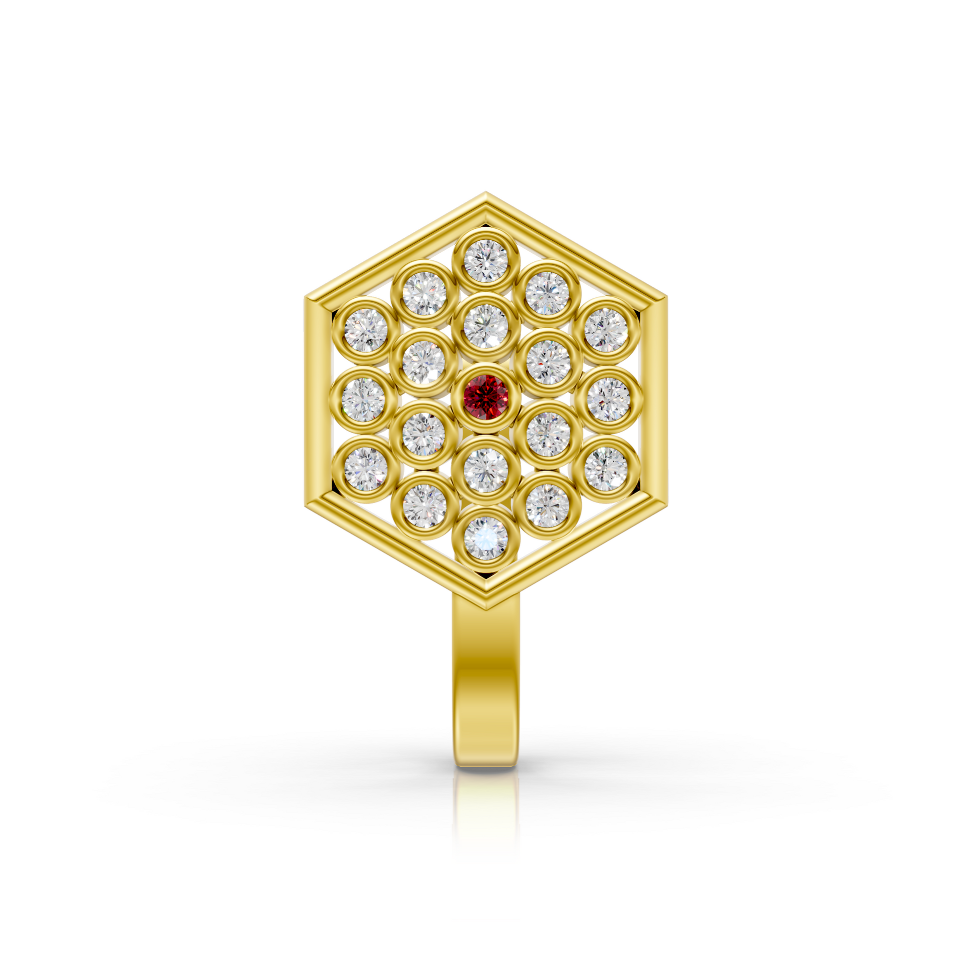 Hexagon Lab Diamond Cluster Nose Pin with Ruby Center in 14K Gold