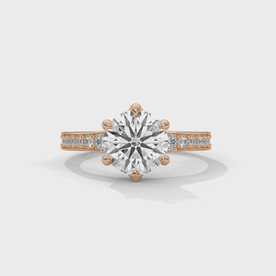 Elegant with a touch of romance, this rose gold Gleaming Large Flower ring features a 2.5 carat round lab-grown diamond at the center, flanked by delicate pavé-set diamonds along the band. Designed for modern brides or fashion-forward women, this ring blends classic elegance with a soft, feminine glow — ideal for engagements, anniversary gifting, or self-love splurges.